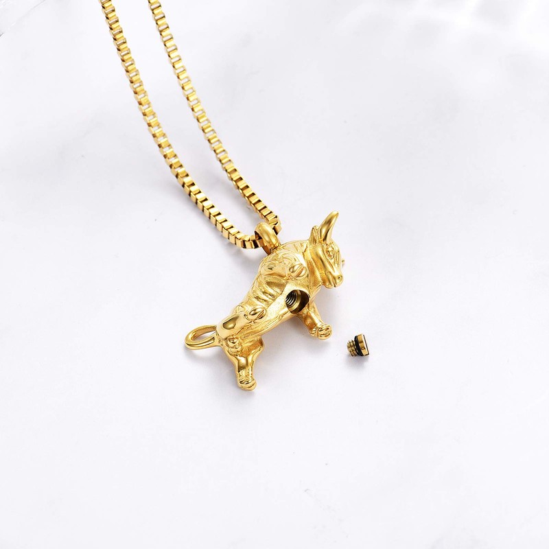 - đăMulti-function Cremation Jewelryă-- Novel design cute bull pendant necklace is also a cremation vessel to hold the ashes of a loved one. It is available in the form of pendants, key chain, bracelets, necklaces, lockets, etc.