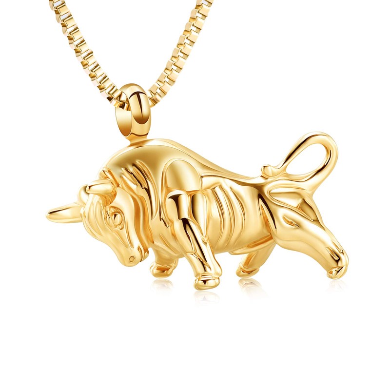 XSMZB Bull Urn Necklace for Ashes of Loved One Stainless Steel Highland Cattle Cremation Jewelry Keepsake Ashes Holder Memorial Pendant for Men Women(Gold)
