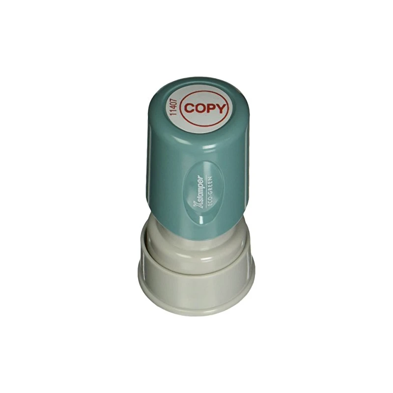 - Red ink Copy Stamp is pre-inked and re-inkable. Retractable frame keeps stamp surface away from desktop until ready to use. Plastic cap makes it safe to carry in purse or pocket. Impression size is 5/8"" diameter