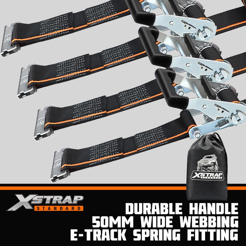 XSTRAP STANDARD 4 Pack E-Track Ratchet Straps 2" x16', 4400 LBS Break Strength Heavy Duty Tie Down Strap for Moving, Truck, Trailers, Motorcycles, Kayaks, Car Roof, Black