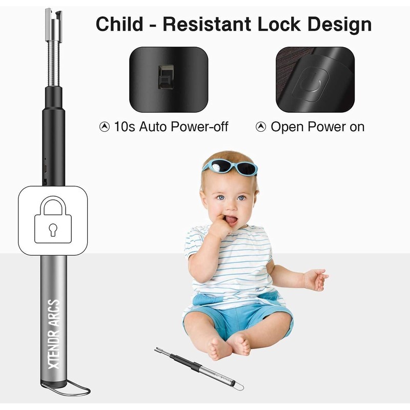 - 【User-friendly】-A safety lock switch keeps the children and pets away from the arc. After 10 seconds the candle lighter will automatically stop working to avoid accidental lighting.