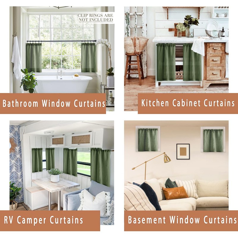- WHERE TO USE:These linen Short curtains are not only suit for the kitchen window, but are also the perfect addition to your small bedroom windows, bathroom or bay windows, laundry room, loft, basement, cabinet , RV or camper. These small kitchen curtains can be paired with farmhouse, coastal,rustic, modern or vintage style home decor as you like.
