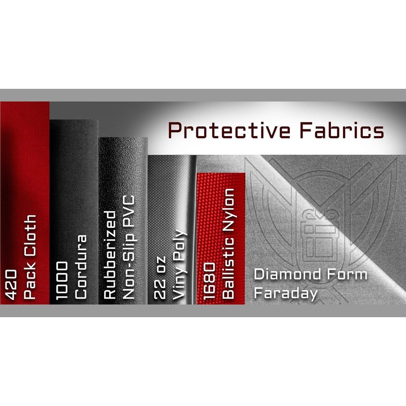 - Tough, 100% nylon fabric featuring a 2x2 basket weave known for its abrasion resistance, durable construction, and high-tensile strength.