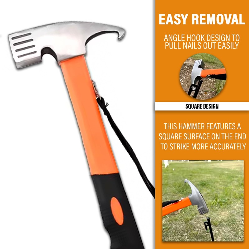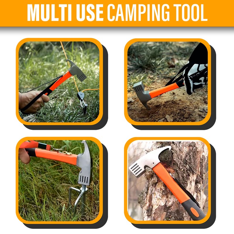 - MULTIFUNCTIONAL TOOL - Serves as both a tent peg mallet and a peg remover tool, perfect for camping, hiking, and outdoor activities. Works with steel stakes, tent pegs, and hooks for all your setup needs.