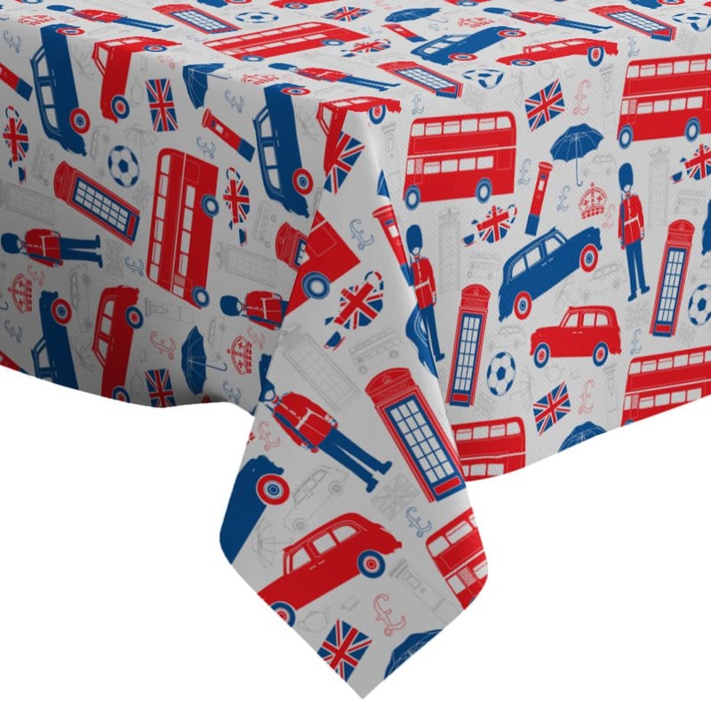 Xtremepads London Symbols Icons Pattern Pattern - Rectangle Oblong Linen Tablecloth, 60" x 102" inches Washable Decorative Table Cloth