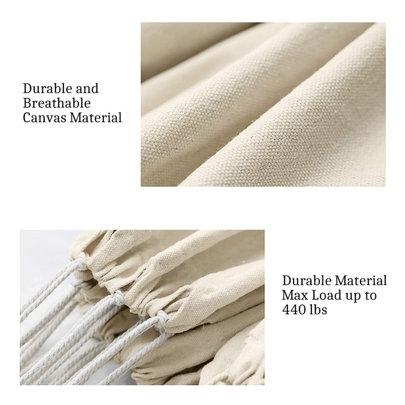 - Comfortable and Elegant: The hammock is made from polyester cotton canvas, gives both comfortable feeling and soft touching. An elegant design of tassel hanging on the sides makes the hammock looks outstanding. Two color selections for both hammock and the carrying bag makes your own style.