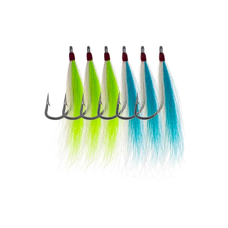 Xubbwov Bucktail Teasers 6/0 Hooks 6 pcs 2 Color (Green Cyan)