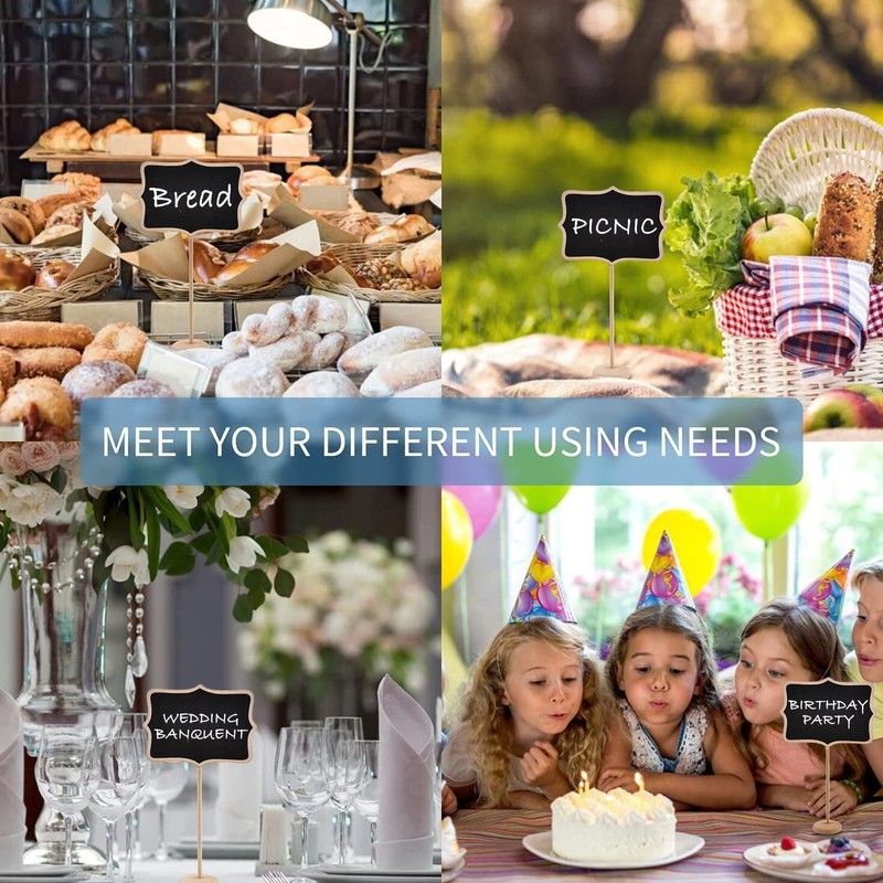 The wooden blackboard are suitable for parties, wedding, anniversary event decor, gift boxes, wine bottles, craft projects, price tags, menu board and son on; chalkboard tags can be written directly with liquid chalk pen or chalk.
