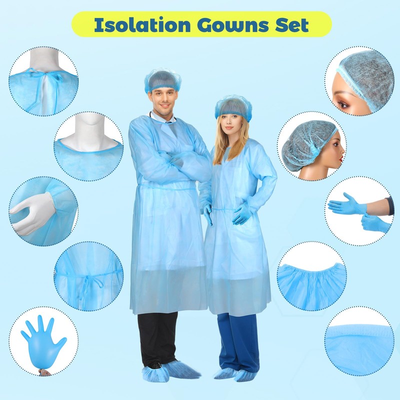 - Multi-purpose Use: this disposable gowns set is versatile and suitable for various applications, such as medical facilities, laboratories, cleaning services, and more; You can rely on this set for protection in different environments, making it a practical choice for a range of industries