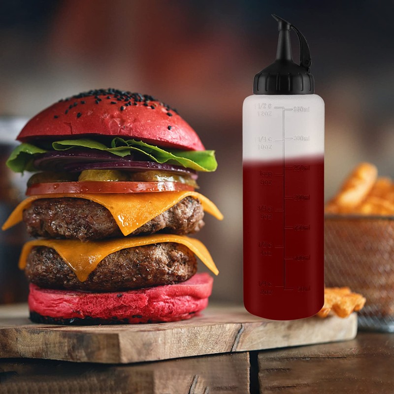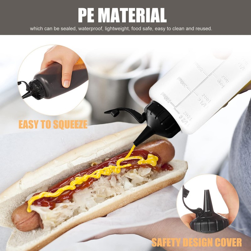 • Easy to use: the body of the ketchup dispenser is soft, easy to squeeze and can be quickly applied with sauces. The squeeze bottles have a side measurement indicator for easy dosing of sauces and condiments.