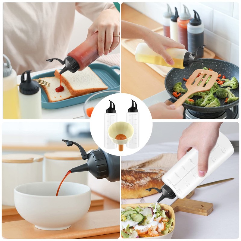 • Wide applications: Condiment bottles perfect for any liquid that comes to mind. From ketchup, mustard, soy, chili sauce, spices, sushi sauce to oil, maple syrup, chocolate, peanut butter, salad dressings and more.