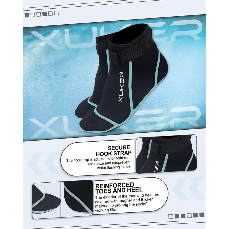 - 【Ideal for Various Sports】XUKER Neoprene Socks Fits Multiple Water Sports - lake pool ocean swimming, snorkeling, jetskiing, kayaking, paddling, boarding, diving, surfing, or just hanging out with your feet in the water; Beach Activities - sand soccer, beach volleyball, beach combing; Exercises - yoga, pilates.