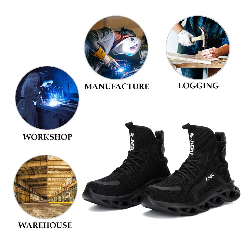 - Non-metal exposed Steel Toe Work Boots: The working boots provide protection against 200J of energy, offer more protection against nails, screws and other sharp objects.