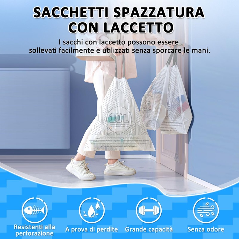 XUXRUS 10 l Müllbeutel mit Kordelgriffen, 90 kleine vorgeschnittene Müllbeutel (45 × 50 cm), reißfest, wasserdicht, langlebig für Badezimmer, Küche, Wohnzimmer