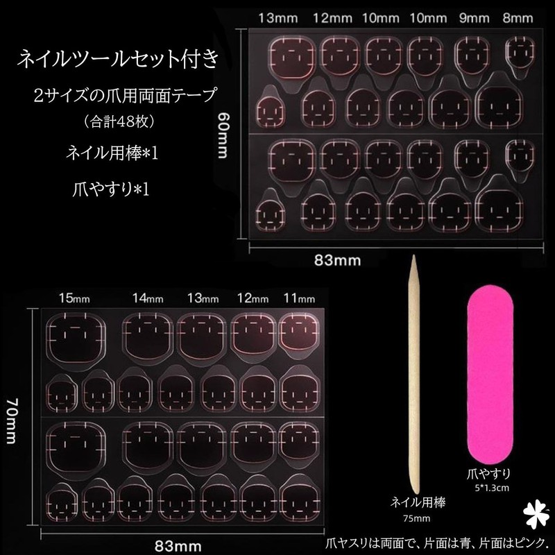 - Set Contents: 24 fashionable nail tips, 24 large and regular size nail tapes, 48 total pieces. 1 wooden stick, 1 nail file