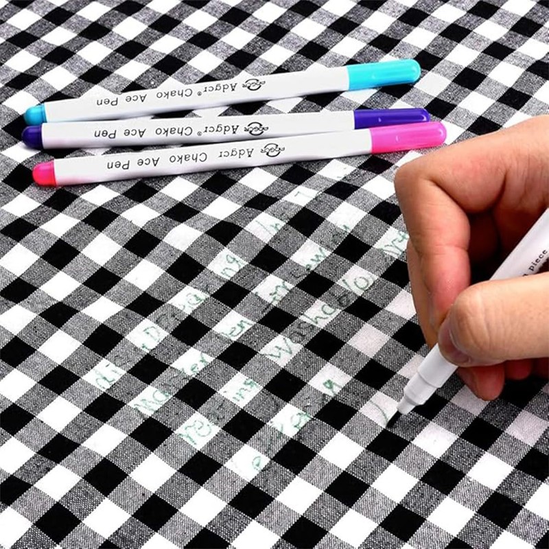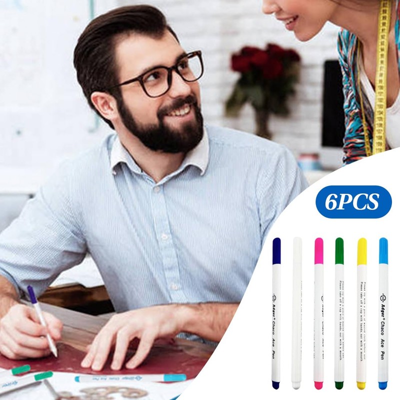 XUZOPIM Pack of 6 Water Soluble Marker Pens Textile Markers Sewing Set, Water Soluble and Self-Extinguishing, Precise Tailor's Chalk for Sewing, Quilting and Leather Work, High-Quality Fabric Marker