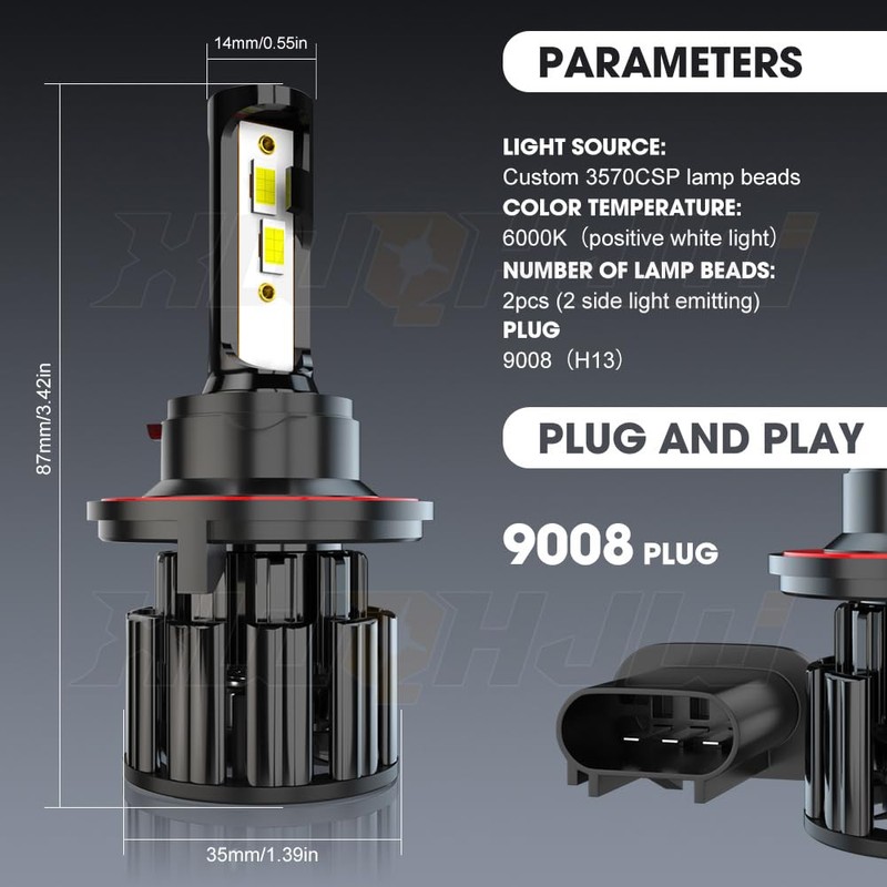 - High Brightness - H13 9008 Light bulbs brightness up to 32000 lumens, 500% brighter than halogen lamp, provide a safe view for your driving.