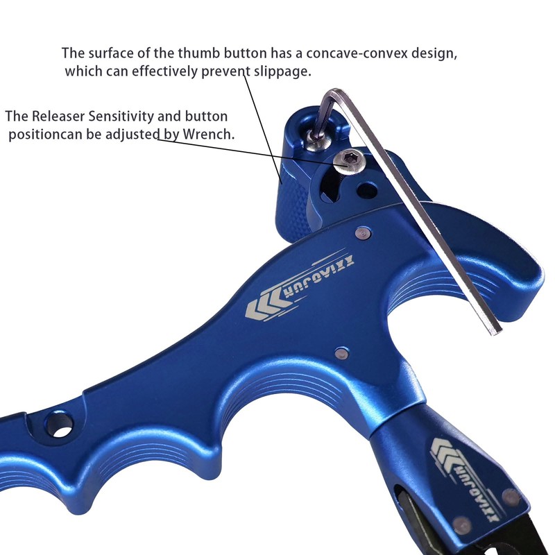 - Archery Release--Archery release aids and adjustment tools.with anti-slip grain.The Releaser Sensitivity can be adjusted by Wrench. Perfectly improve the accuracy of hitting the target.Arrow release for compound bows,backup release in your hunting package.