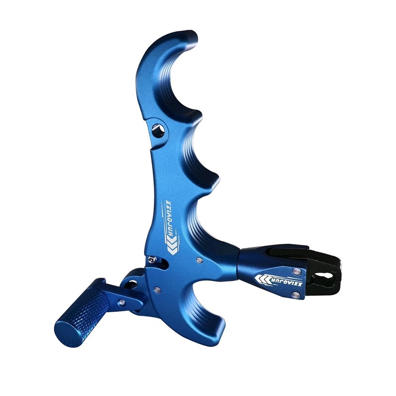 xxiaojun Compound Bow Aid Releaser and D Loop Rope,Adjustable Can Rotate 360° Thumb Release Bow Aluminum Alloy Aids,Archery Release Aids with Anti-Slip Grain. (4 Fingers-Non-Slip Spreading-Blue)
