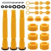 - 19pc Set: Includes 3 bendable tubes, 3 coarse thread spiral rings and 3 fine threads - fits most tanks, 3 threaded tube caps, 6 vent caps 1 drill cap with thick rubber pad