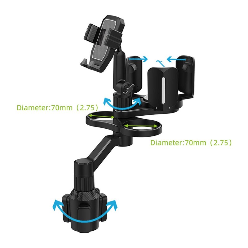 - 【4 in 1 Car Cup Holder Expander】The newest cup holder extender has a total of 3 available cup holders, the upper cup holder can be adjusted from 2.95"-5.7" in diameter and the lower two extra cup holders are both 2.87" in diameter. All cup holders can be 360°rotatable, so you can choose which cup holder to use according to your needs.