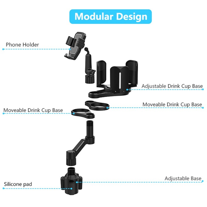 XYAJUANG 4-in-1 Car Cup Holder Expander with Dual Cup Holder, Phone Holder, 360° Adjustable Base, All Purpose Car Cup Holder and Organizer, Car Accessories for Snack Bottles Cups Drinks (D04)