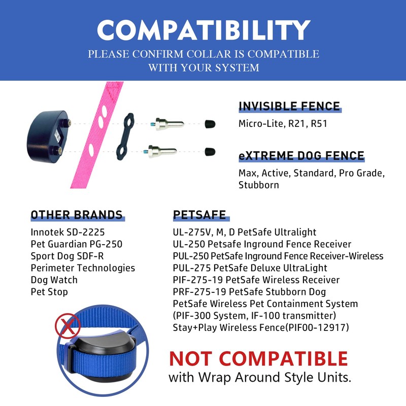 - Our collar fits perfectly on these models such as: Pet, Safe: UL-250, PUL-250/275, UL-275V, UL-275M, UL-275D and PIF-275-19, PRF-275-19, Extreme (Standard, Pro Grade, Max), invisible Fence (Micro Lite, R21, R51), and so on.