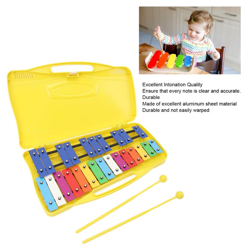 Xylophone 25 Notes Children Colorful Xylophone, Sturdy Aluminum Keys Xylophone with Yellow Box 15.4x9.1x1.6in Small Professional Musical Xylophone for kid Percussion Instrument