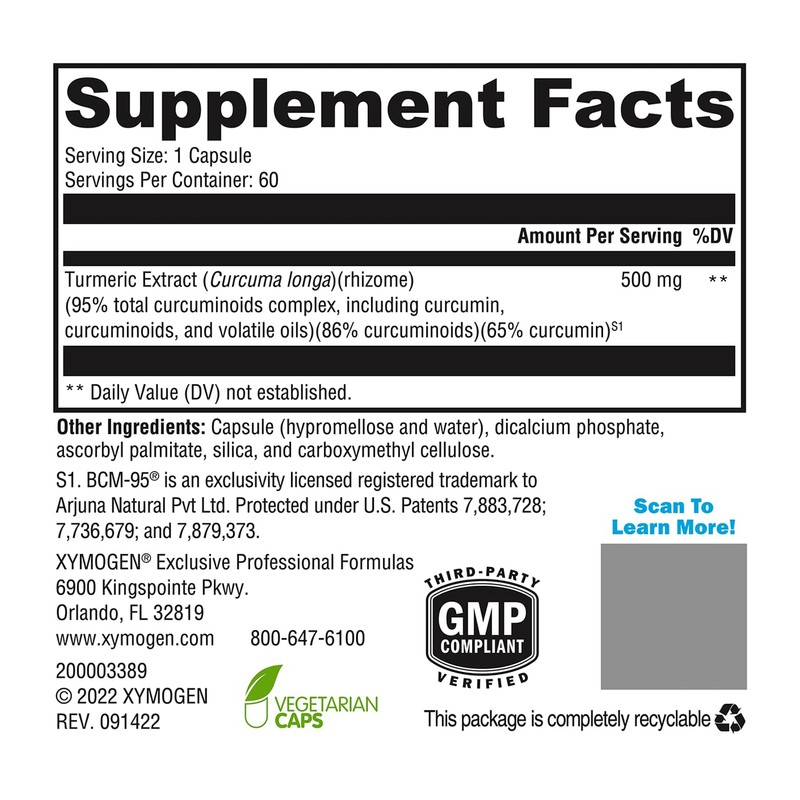 - This natural composition of this curcumin supplement optimizes bioavailability. The BCM-95 in our curcumin capsules has been extensively studied and shows broad efficacy without the use of phospholipids, excipients, additives, carriers, nanotechnology, or bioenhancers.*
