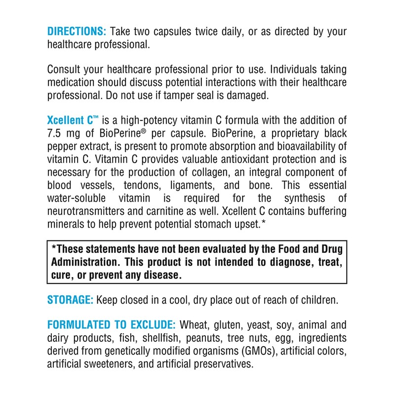 - High-potency (750mg vitamin C per capsule) antioxidant vitamin C with BioPerine black pepper extract to enhance absorption and bioavailability of vitamin C.