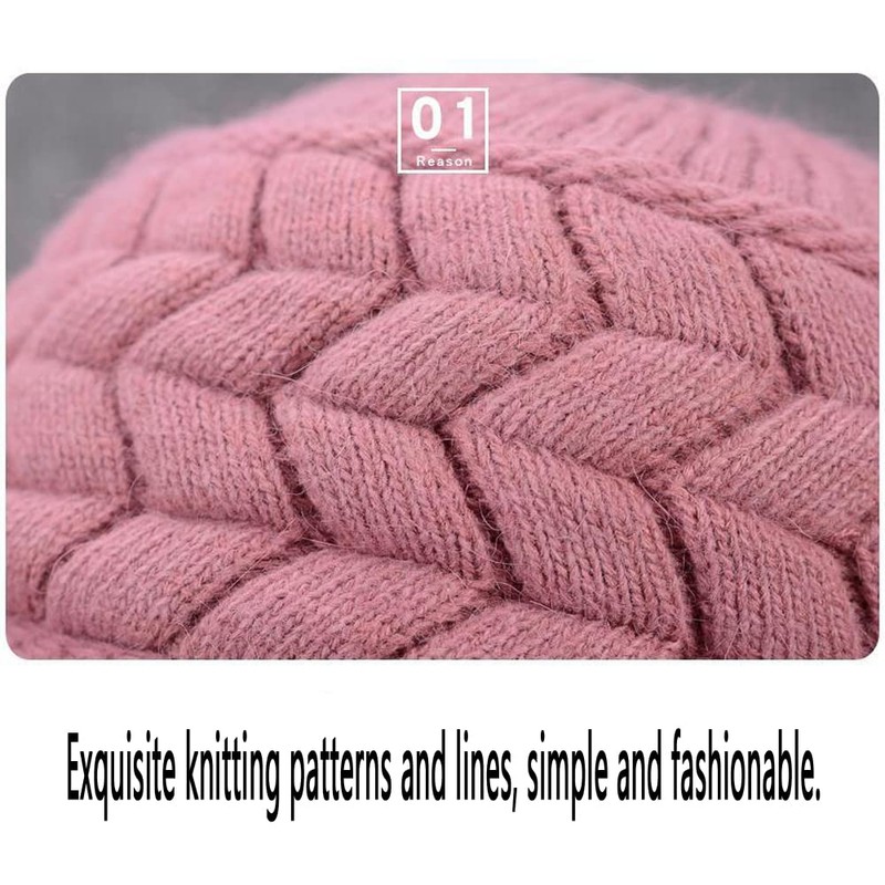 - Material : Acrylic quality comfortable. Knitted hat Double-layer design, outer knitted wool, The inner layer of the hat is thickened with fleece to lock in heat and keep warm.