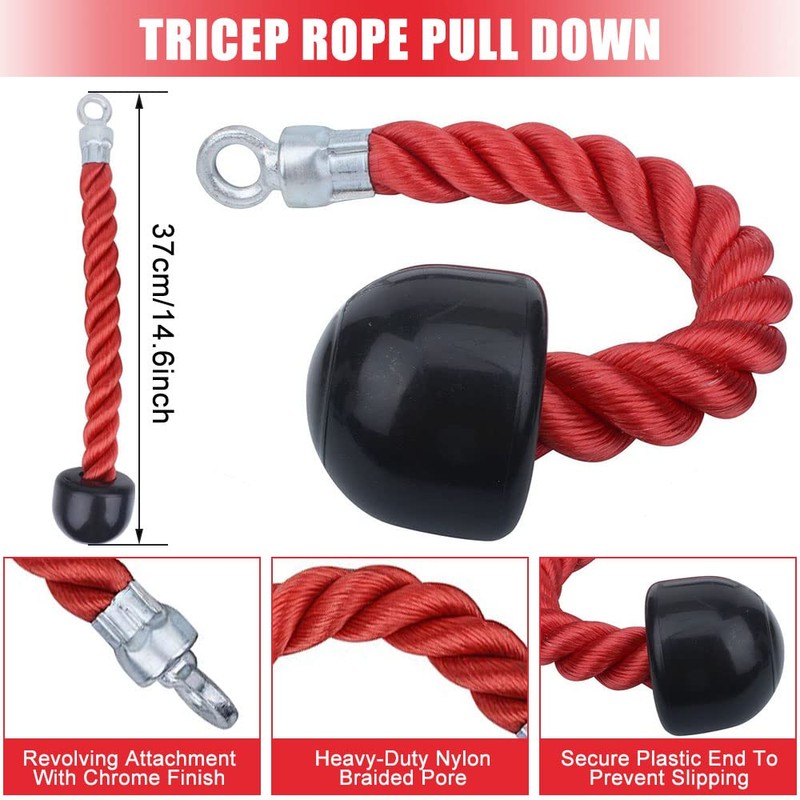 - High Quality Triceps Rope The triceps rope is made of nylon material for superior durability and longevity. This braided nylon rope is constructed to withstand heavy weights and offers a tangle-free experience and promises due to its sophisticated manufacturing quality.
