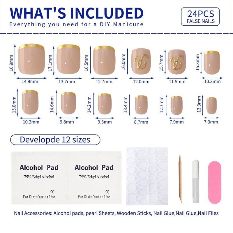 - Press On Nails Short Kit: Our premium set includes 24 3D press on nails Extra Short Square, jelly adhesive tabs, mini nail files, nail glue, and a wooden cuticle stick. Perfect for creating chic French Tips Press-on Nails Short designs or bold Extra Short Square French Tip press on nails