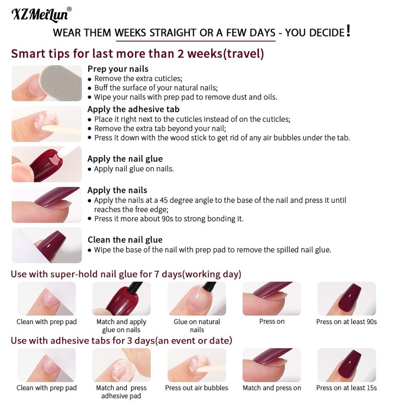 - Gentle & Reusable Designs: Non-toxic materials ensure safe wear. Remove easily with warm water (tabs) or gentle glue remover. Reuse these stick on nails multiple times—your nail beds stay healthy and strong