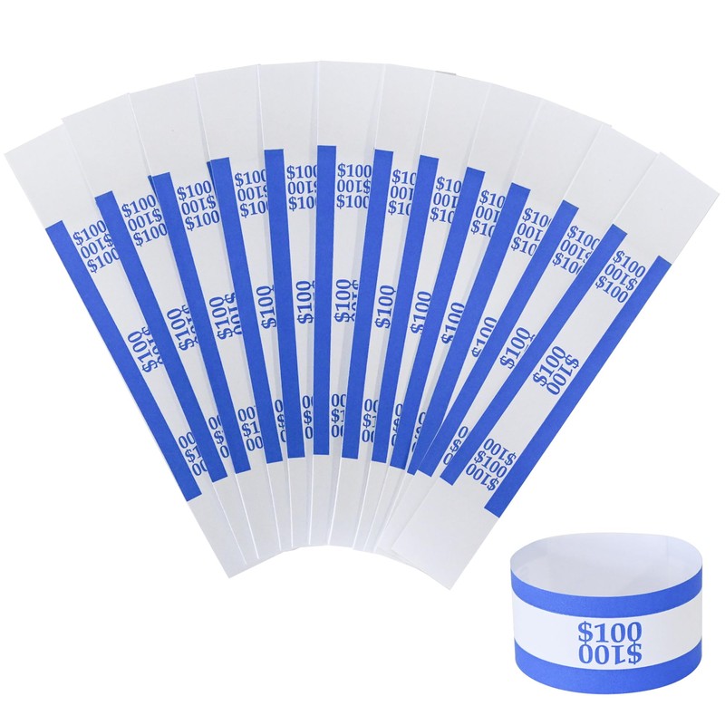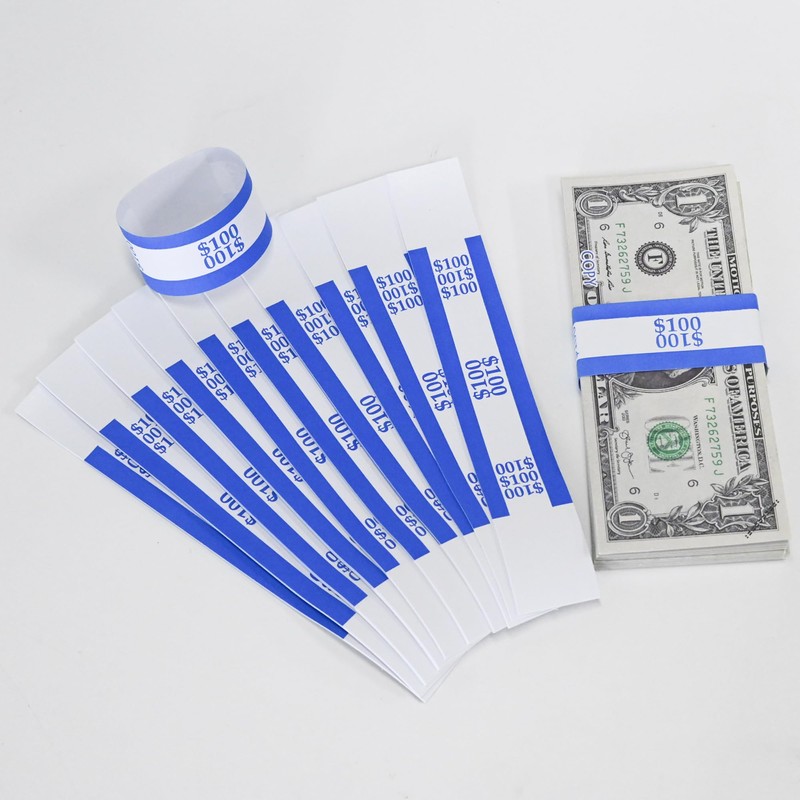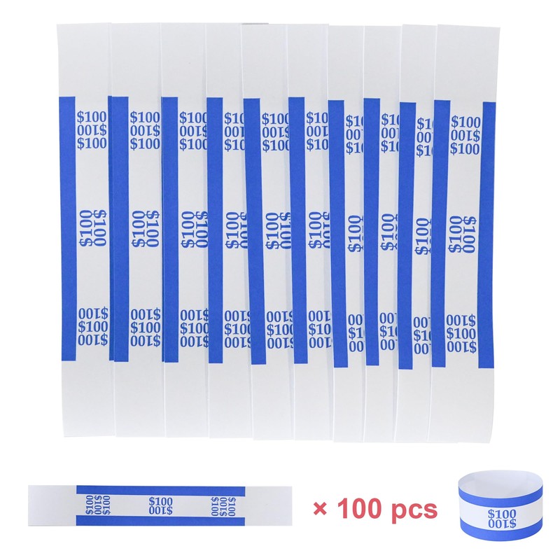 ESSENTIAL Currency Straps – Bill Wrappers, Money Bands to Organize Bills, ABA Standard Colors, Self-Adhesive, 7.5 x 1.15 Inches ($100 / Blue)Ideal for business, financial and entertainment purposes.Feature:Type And Size: Includes 100 $100 dollar money straps, Each belt is 7.5 x 1.15 inches long.Convenient And Fast: The self-adhesive tape is located at the end of each paper money wrapping paper, which can easily bind the paper money. Use these currency bandages to keep your bills neat and organized. The self-adhesive tape on the tape can quickly bind the banknotes, and the easy-to-recognize color is ideal for quick billing.Color Classification: The color conforms to the ABA standard and has the following colors: blueThis shop provides 100% after-sales service guarantee. If you have any questions about the product, please inform us in time and we will solve it as soon as possible.Packing:100 $100 dollar money straps