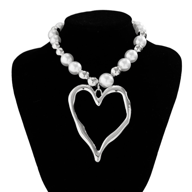 - Unique Design:This two-tone bead hollowed love heart necklace is very exaggerated and fashionable, and the smooth beads make it more comfortable for you to wear. The love heart pendant is also very large and unique, very charming and attractive. Wearing this y2k pearl choker necklace will surely attract everyone's attention and make you the center of attention in the crowd