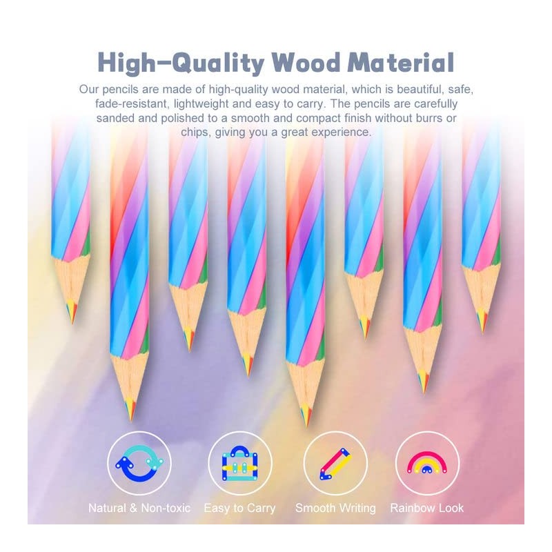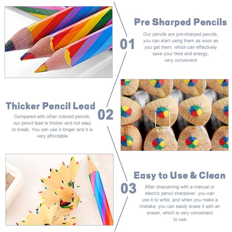 - Easy to use and clean: you can easily use fun rainbow pens like normal pens. You can sharpen it with a manual pencil sharpener or an electric pencil sharpener and then use it for writing. If you make a mistake, it can also be easily erased with an eraser, which is very convenient. Help your students improve their imagination and creativity with these multi-coloured rainbow pencils!