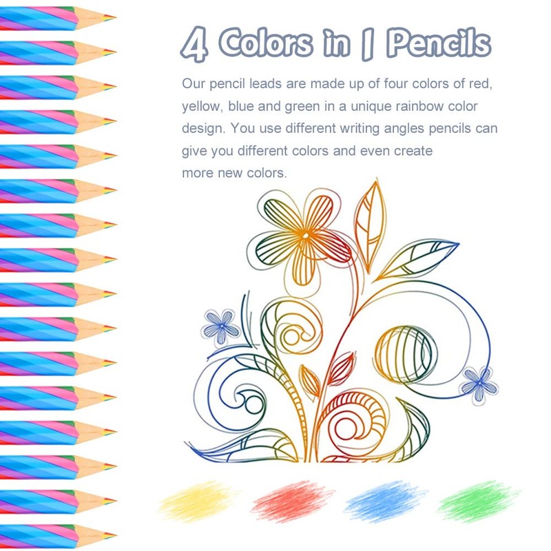 - 🌈[4 colours in one design] Our pencil leads consist of four colours red, yellow, blue and green in a unique rainbow colour design. They use different writing angles, pens can give you different colours and even create more new colours. In addition, the set contains enough rainbow pens to meet your daily use and replacement needs and can also be shared with others.