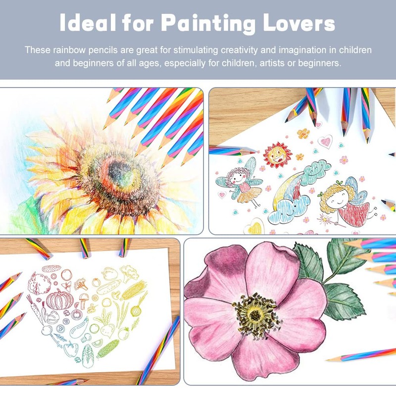 - Ideal for painting lovers: These rainbow pens are great for stimulating the creativity and imagination of beginners of all ages, especially for artists or beginners. Suitable for home, school, office and other occasions. Multi-coloured pencils can also be used for birthday party gifts, learning aids for teaching incentives, teaching incentives, personal collections, office workers, travel purposes and more.