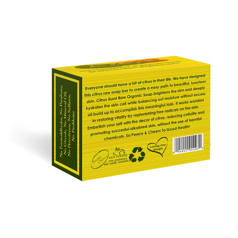 Citrus has antioxidant properties which fight free radicals that damage our skin; bringing life back to lifeless and stressed skin. This deep cleansing bar will make the appearance of your skin look younger with consistent use. Citrus also contains anti-inflammatory properties which help reduce or eliminate the appearance of red and irritated skin. This bar can also help fight acne because citrus oils are toxic to the bacteria that causes acne. The elimination of this bacteria, is the elimination and prevention of acne