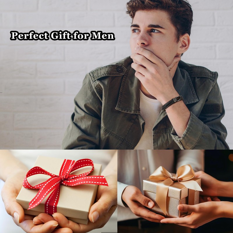 - 💖 Gift for Men: Leather bracelets in a beautiful gift box with a card with good wishes are a special surprise gift that reminds the recipient that they are loved forever. Give men's bracelets to your son, grandson, dad, husband, brother on graduation, Christmas, anniversary, Thanksgiving, back to school or any other occasion.