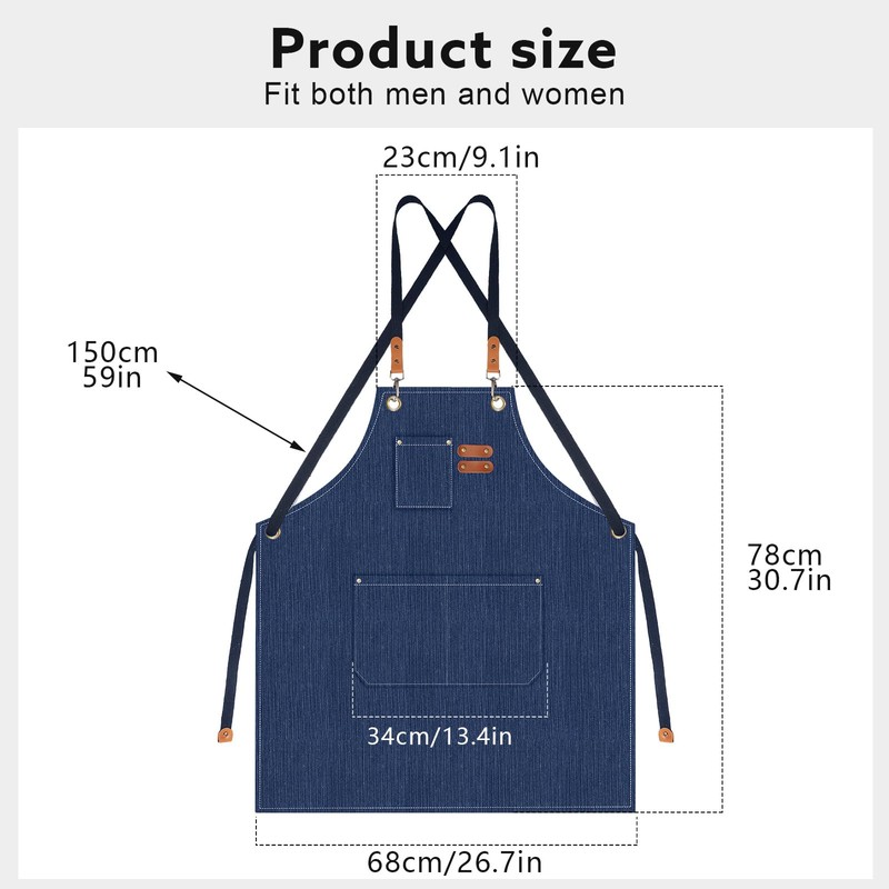- 【Easy to wear】The details of apron for cooking are processed, and the connecting part is covered with vegetable tanned leather, which is exquisite and fashionable, and the hook design is easy to put on and take off