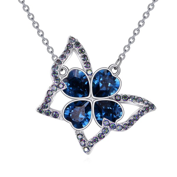 YAFEINI Butterfly Necklace Sterling Silver Clover Pendant Animal Necklace Butterfly Jewellery Gift Women, Sterling Silver, No