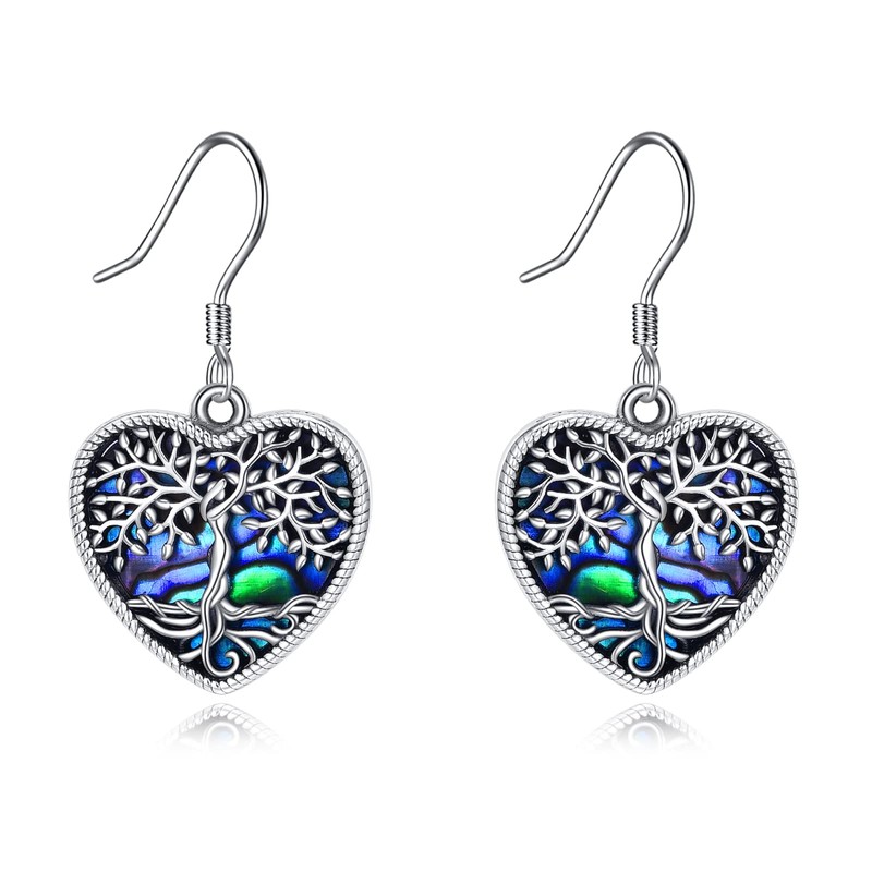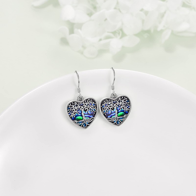 Heart Tree of Life Earrings Sterling Silver Abalone Shell Tree of Life Jewellery for Women Girls