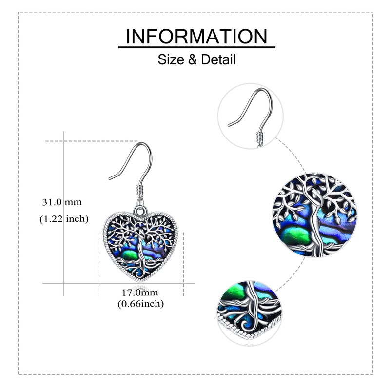 - 🌲 ❤️ Design:Tree of life symbol of good luck,health,growth and strength.The heart tree of life earrings inlaid with colourful abalone shell,mysterious, elegant and charming