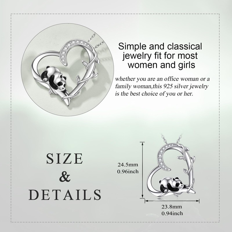 - Material: This panda jewellery necklace is made of high-quality sterling silver. It is not only durable, but also low allergy, making it suitable for people with sensitive skin. The sterling silver guarantees a long-lasting shine finish that does not easily rub off and maintains its beauty for a long time.