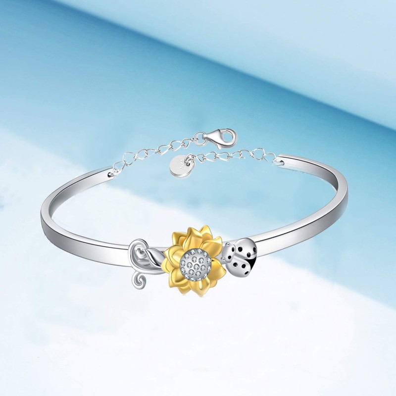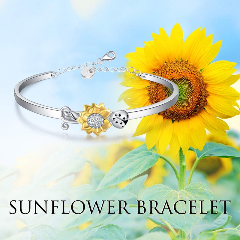 YAFEINI Sunflower Bracelet 925 Sterling Silver Sunflower Bangle Bracelet Ladybug Cuff Bracelets for Women Jewelry Gifts (Sunflower Bracelet)