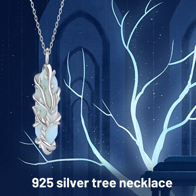 YAFEINI Tree Of Life Necklace Sterling Silver Opal Healing Stone Necklace Opal Tree Of Life Pendant Jewellery For Women Men