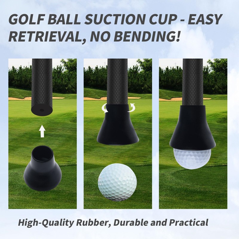 - Easy to Use: This innovative golf ball picker upper easily attaches to the end of a putter grip. Simply press it onto the ball when it goes into the hole, and the ball will stick to the putter sucker, allowing you to pick up golf balls without bending down. Say goodbye to back stress on the green