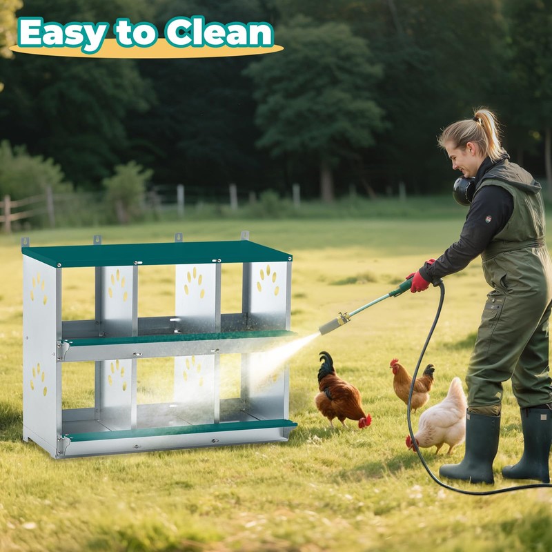 - 【Easy to Clean】The roll away nesting box is made from high strength galvanized steel, preventing aggressive chickens to damage the nesting box. It is easy to clean and maintain. Simply rinse with a water hose to keep a clean egg-laying environment for your hens